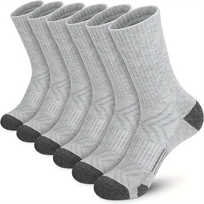 6 pairs Men's Solid Crew Socks - Comfy Breathable Thermal Socks for Winter & Autumn