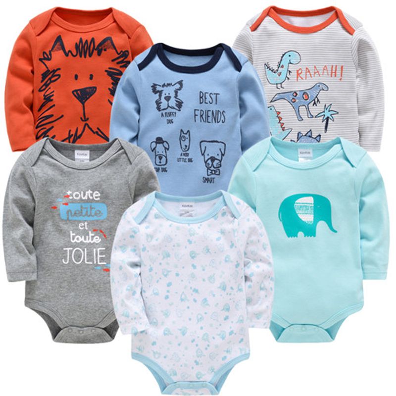 6 PCS 3 PCS Kavkas Baby Boys Girls Bodysuit Long Sleeve 100% Cotton Baby Clothes 0-12 months Newborn body bebe Jumpsuit Clothing