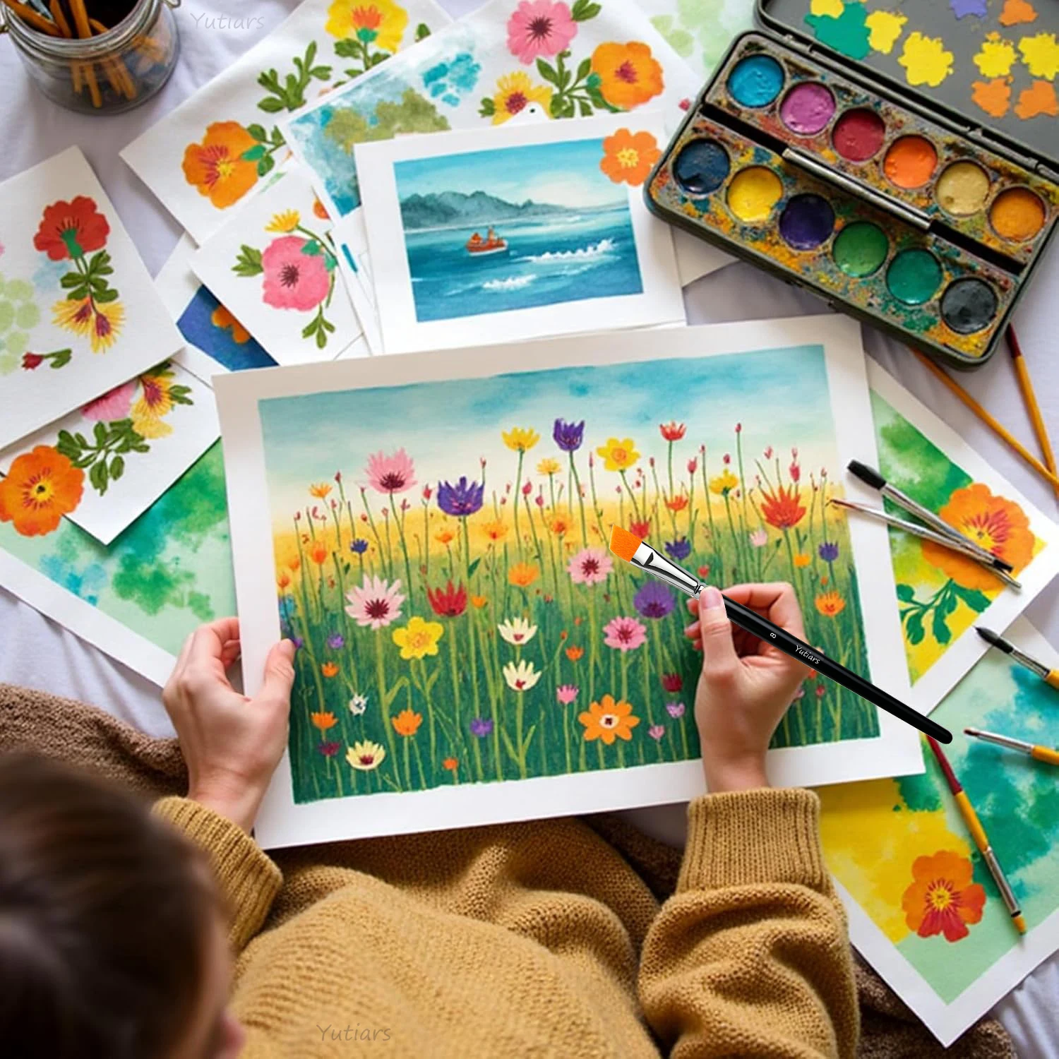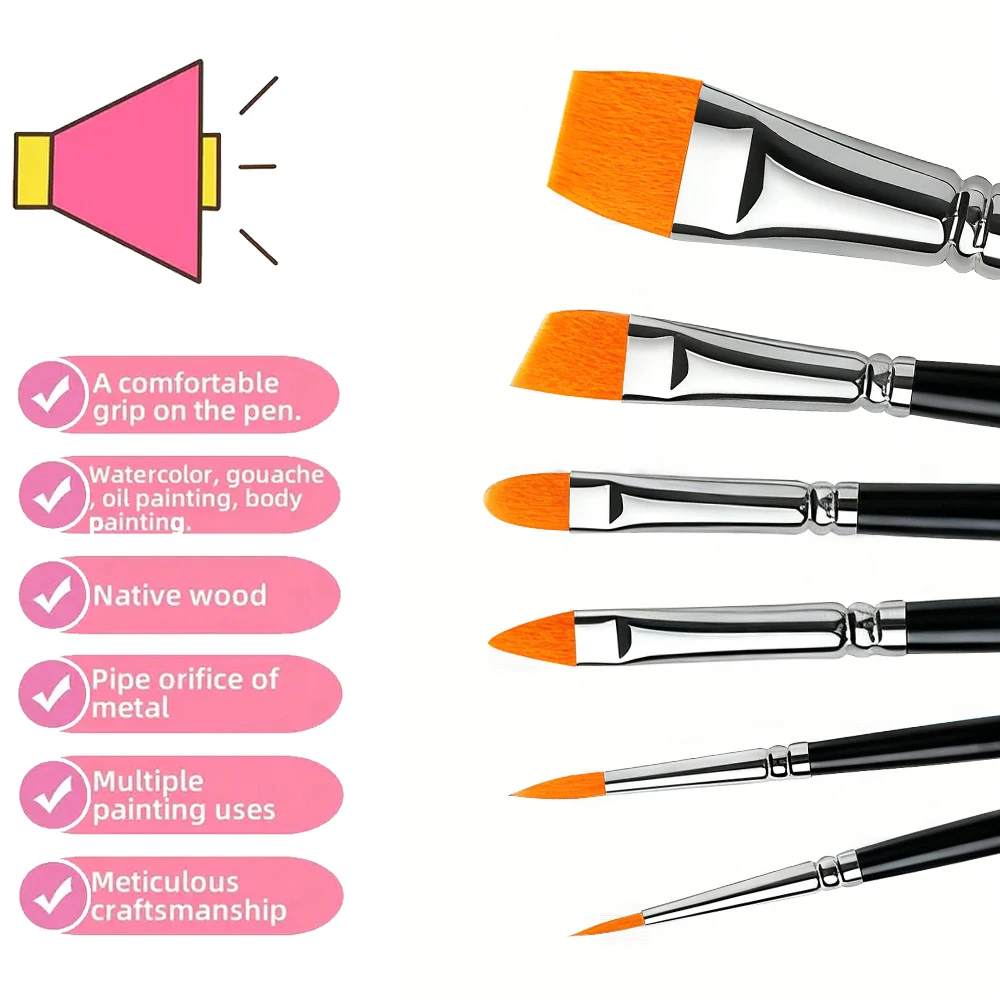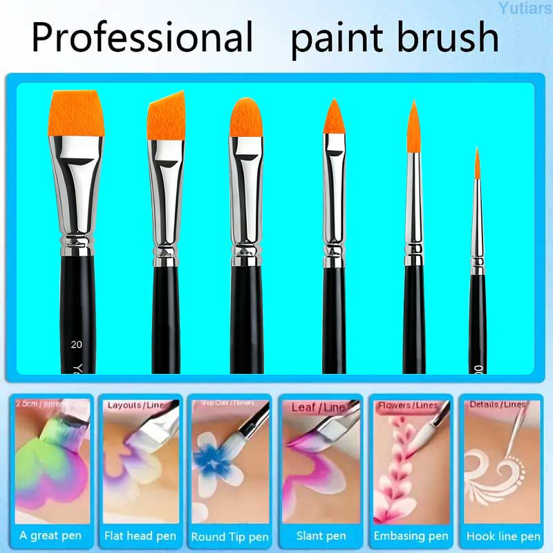 6 Pcs Face Painting Brush Kit Professional Quality Art Brushes for Watercolor Acrylic Oil Paint Nail Art Makeup Tools