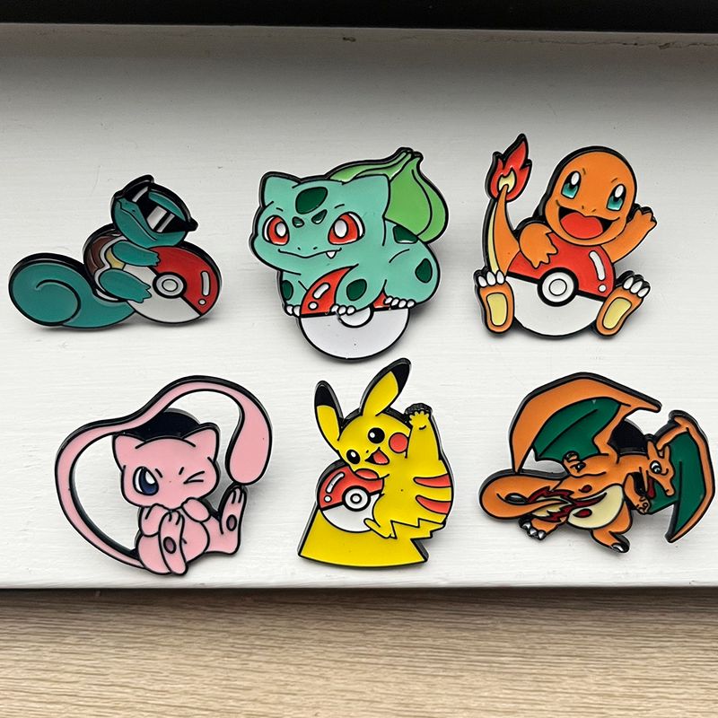 6 Pcs Pokémon Brooch Set Cute Mewtwo Charizard Enamel Pins Creative Metal Badges for Backpacks Ideal for Children's Jewelry