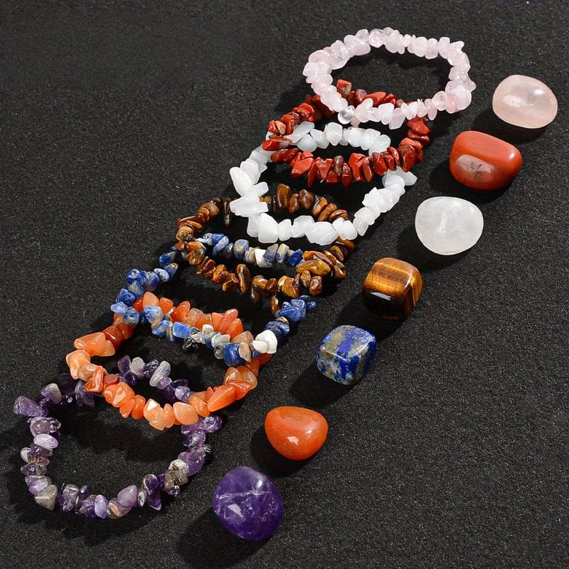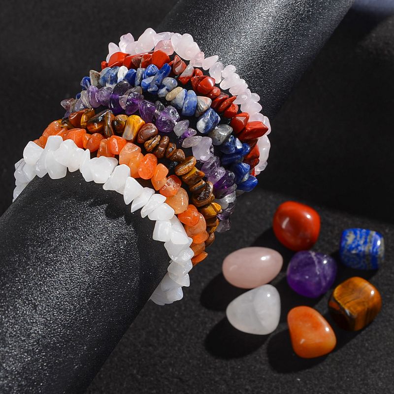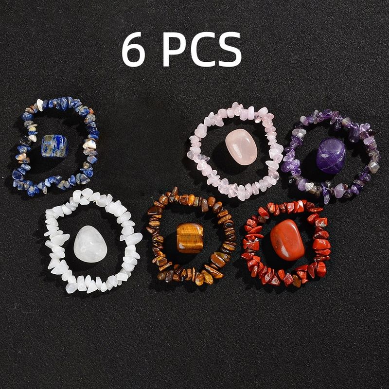 6 Pcs/set Natural Chips Stone Bead Bracelets Amethyst Red Jasper Irregualr Bracelets Reiki Healing Energy Jewelry Summer Gift
