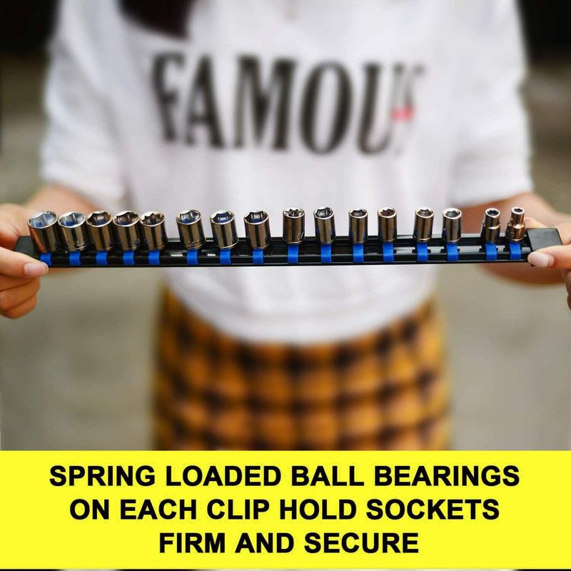 Spring Loaded Ball Bearings On Each Clip Hold Sockets Firm And Secure