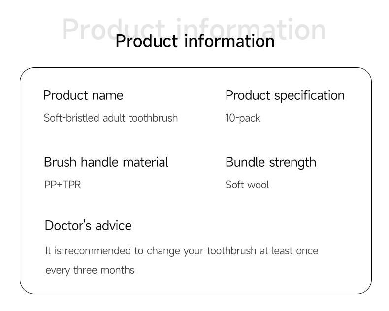 5.Choose two or three toothbrushes at the same time to take turns if condition permits,so that the dry time of toothbrush is prolonged.