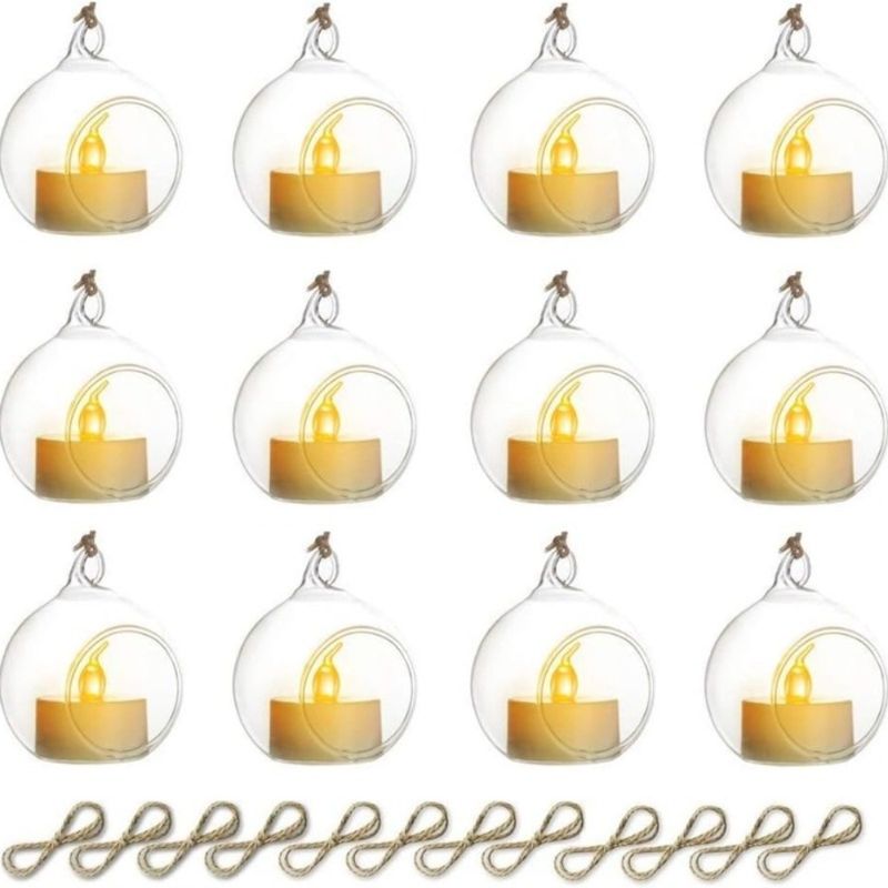 6/12 Pcs Hanging Glass Tealight Globe Candle Holder Succulents Vase Hanger for Home Wedding Party Indoor Outdoor Decor
