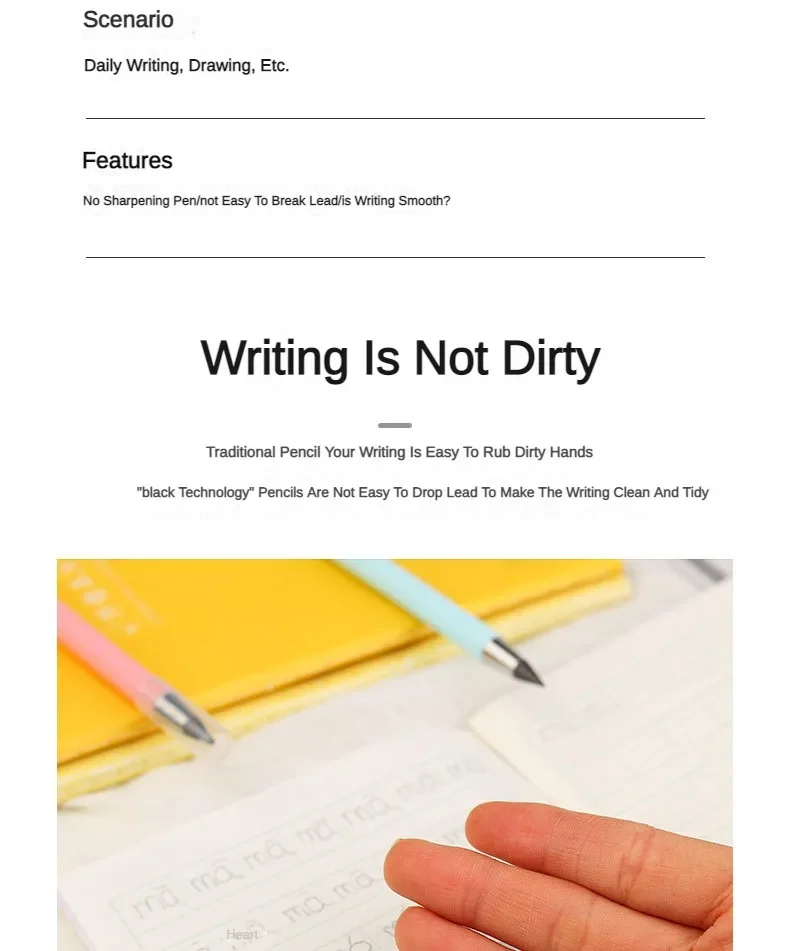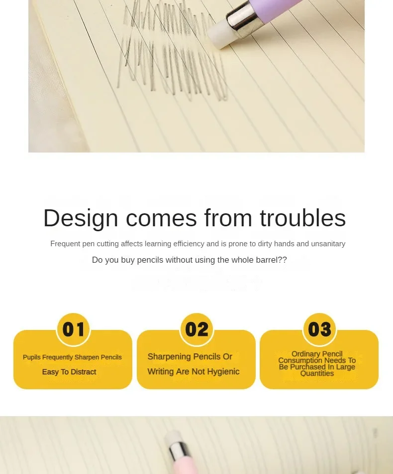 1.【Cutting-free design】: eliminates the cumbersome steps of sharpening pencils, making writing more efficient.