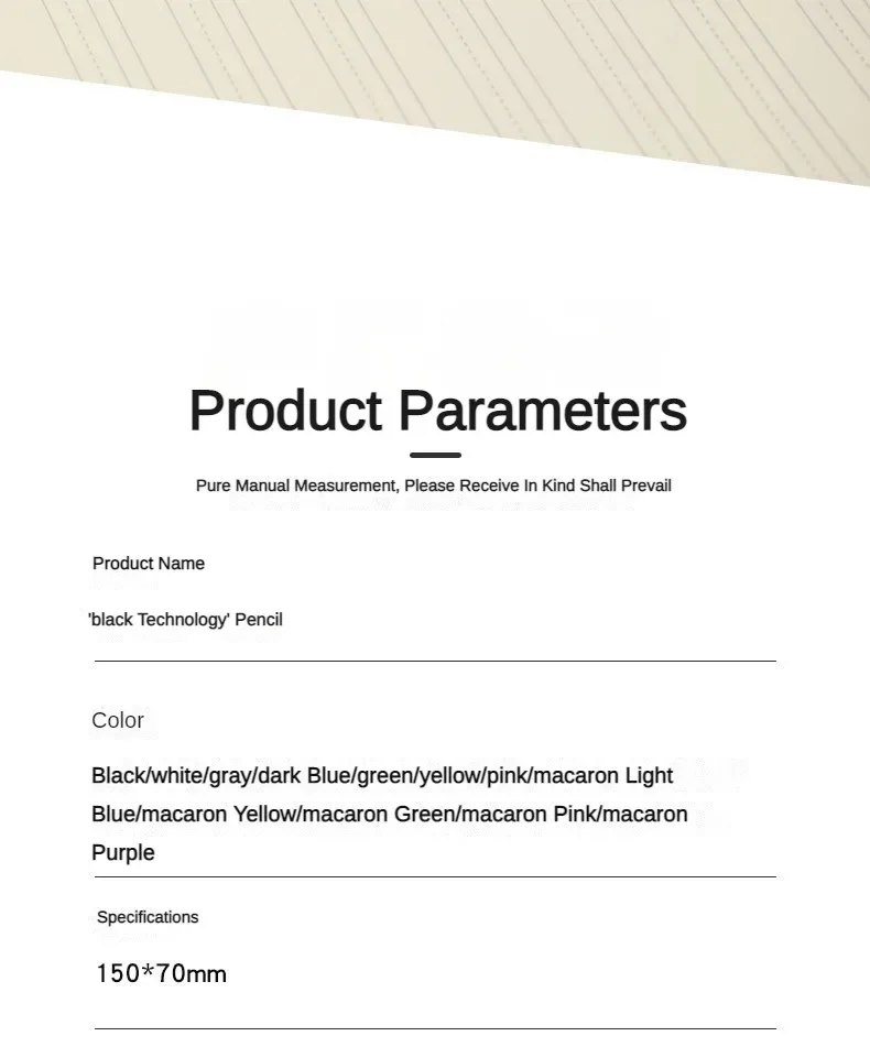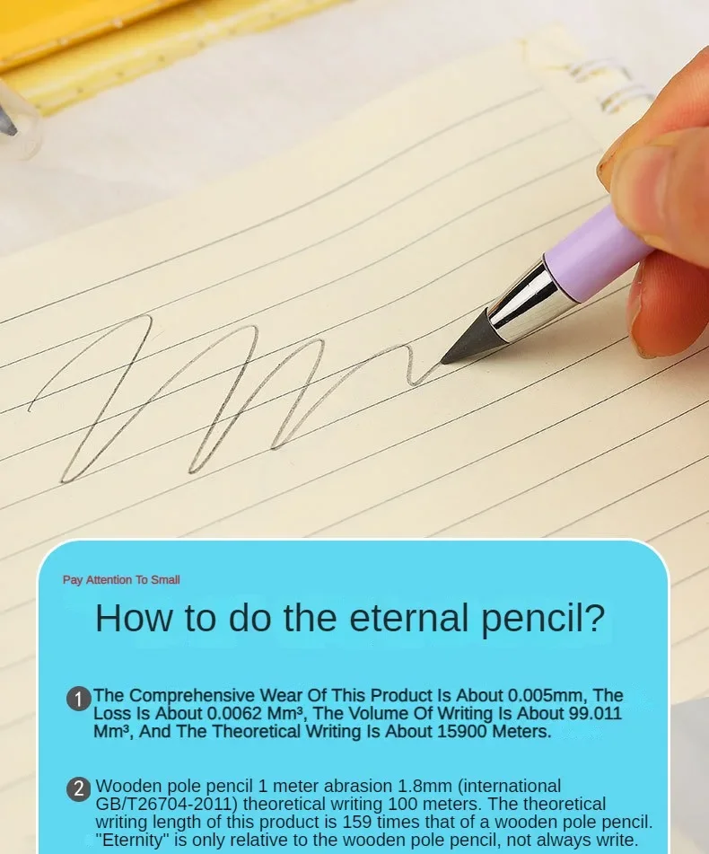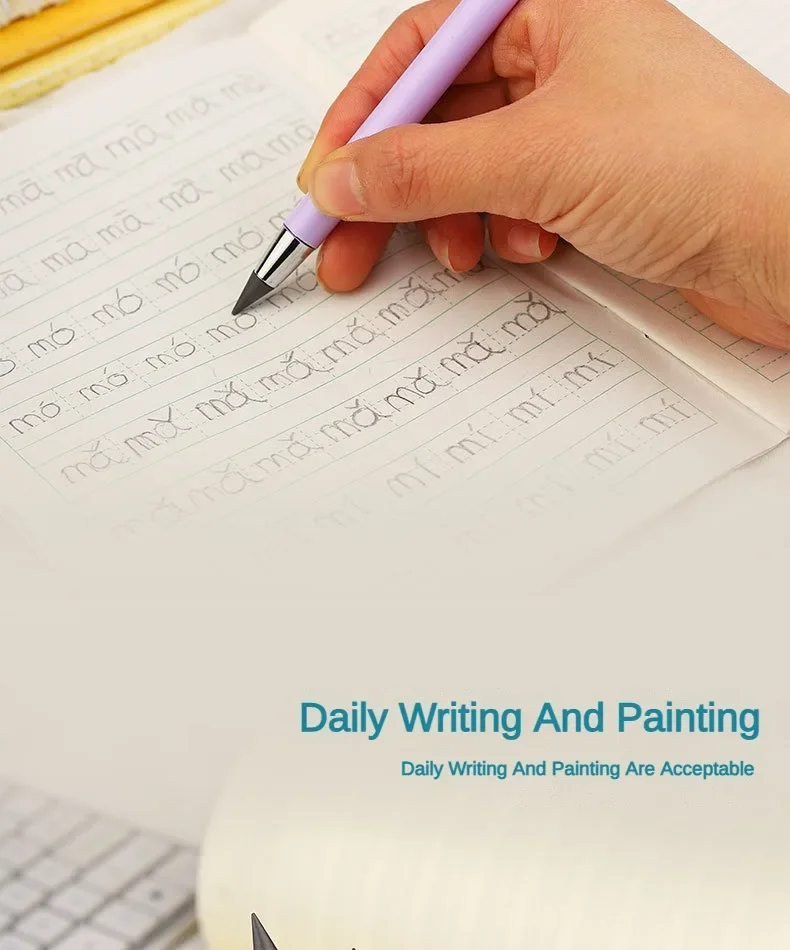 The Eternal Pencil subverts your perception of traditional pencils. It is not only a pencil, but also a powerful assistant for your learning, work, and creation. The shaving-free design allows you to bid farewell to the cumbersome pencil-shaving steps and spend more time on creation. The non-breaking lead allows you to write more smoothly and no longer worry about breaking the lead. A variety of colors are available to meet your different needs for color. Writing does not dirty your hands, allowing you to stay clean. The black technology tip makes writing clear and smooth, allowing you to enjoy the joy of writing. The candy-colored cylindrical pen holder is comfortable to hold for a long time. There is also a built-in eraser head that allows you to correct at any time, making your work more perfect. Whether it is daily writing or painting creation, the Eternal Pencil is an indispensable choice for you. With the Eternal Pencil, release your creativity and light up the color of life!