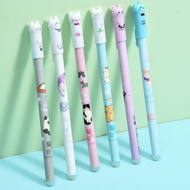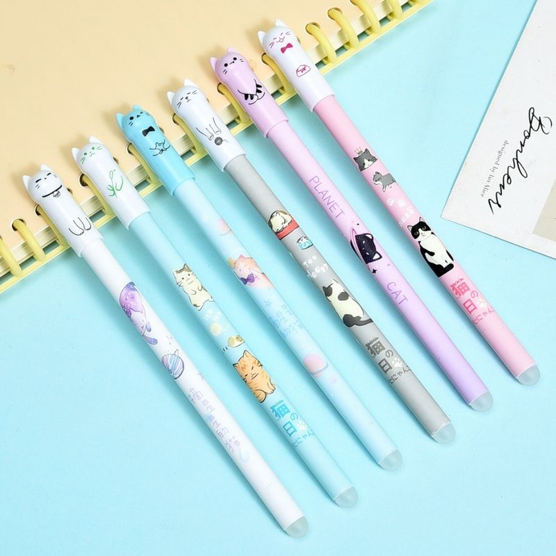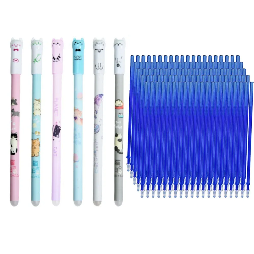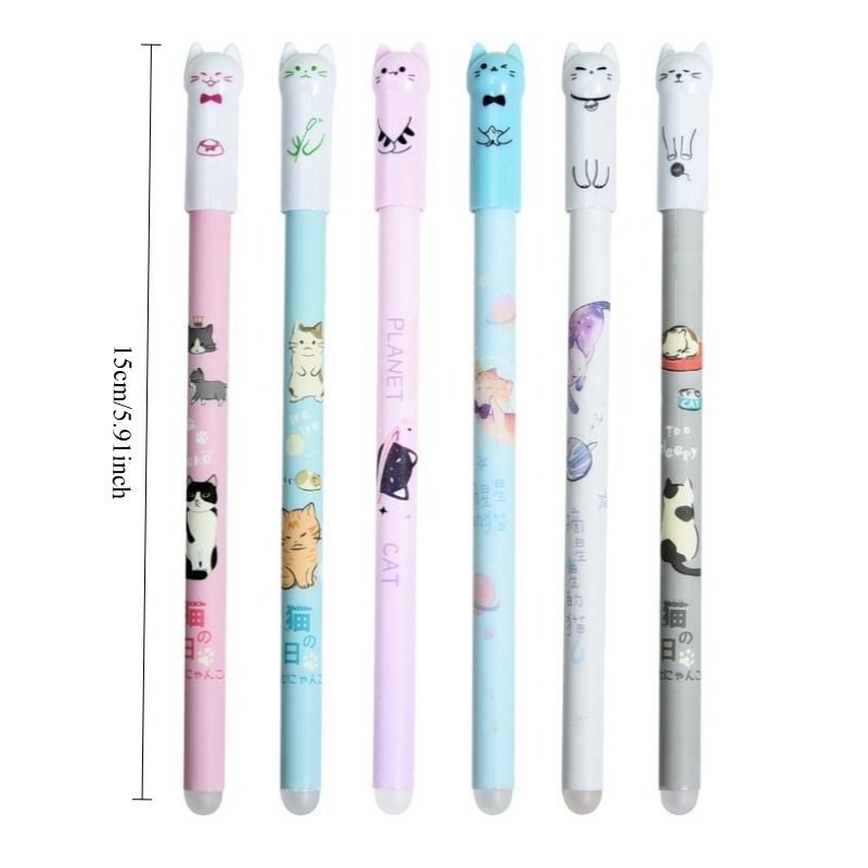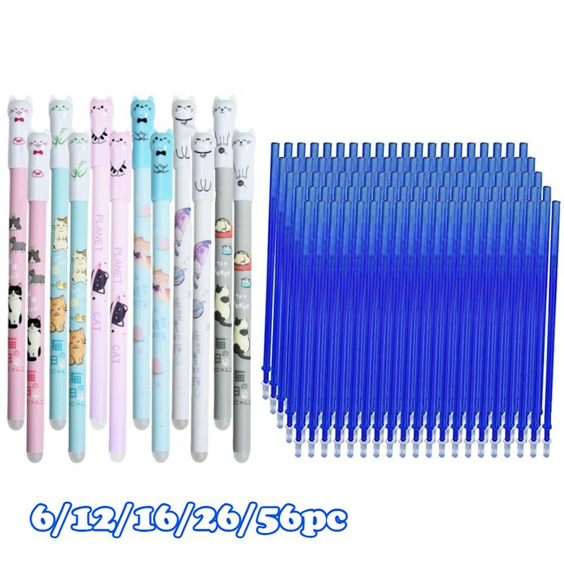 6/12/16/26/56pc Cat Erasable Gel Pen, 0.5mm Crystal Blue, Refillable Student Stationery,with Pen Refill