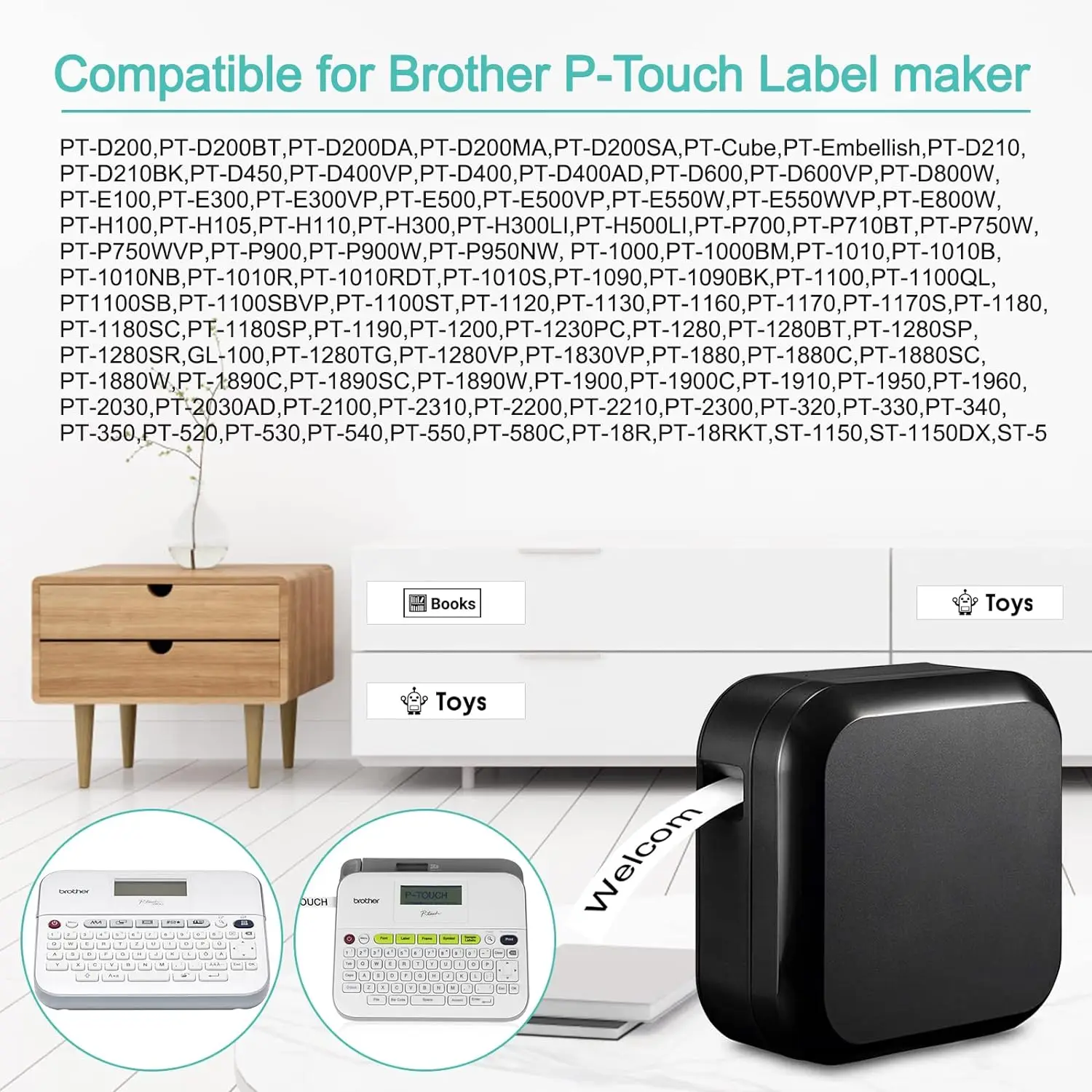 Compatible for Brother Ptouch Label Maker, as follows: