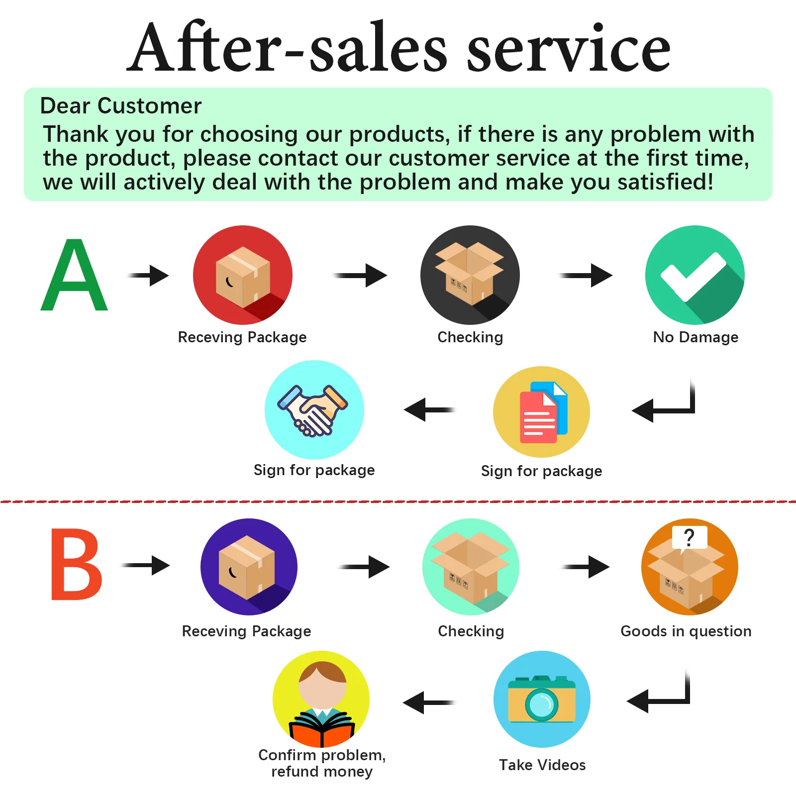 If you receive a damaged, defective, or incorrect item, please contact us within 7 days of delivery and provide clear photos of the product and packaging. We will arrange a replacement or full refund at no additional cost.
