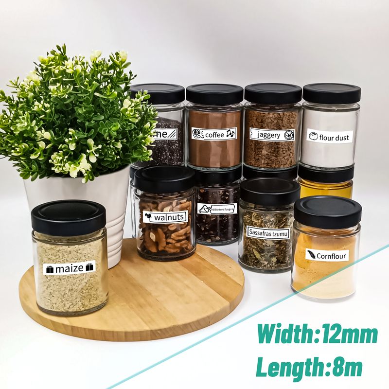 Size: 6mm, 9mm, 12mm, 18mm, 24mm x 8 meters (but fluorescent tapes are 5 meters)