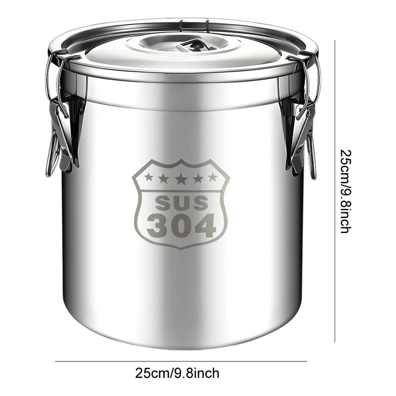 6/12/21/33L 304 Stainless Steel Airtight Canister with Locking Clamp for Rice Grain Oil Sugar Storage Bucket Kitchen Container