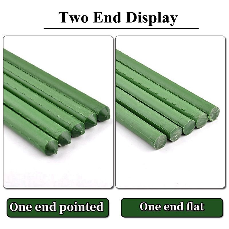 1.The plant stakes are made of sturdy hollow steel and the surface is covered with green environmentally friendly and non-toxic plastic coating fo rust protection,and extend the service life.