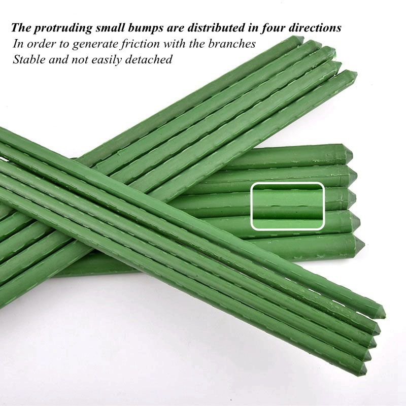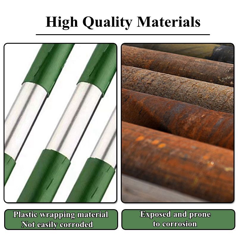 1.The plant stakes are made of sturdy hollow steel and the surface is covered with green environmentally friendly and non-toxic plastic coating fo rust protection,and extend the service life.