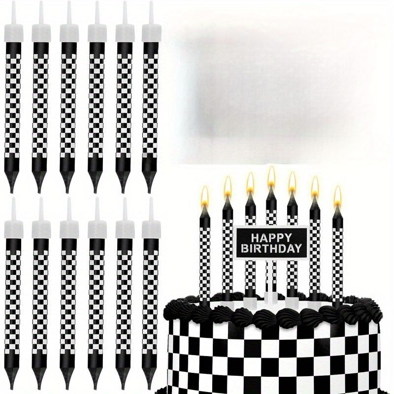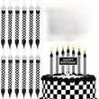 6/12pcs Black and White Birthday Checkered Candles and Cake Topper Racing Cars Candles Sparkler Candles for Racing Car Party