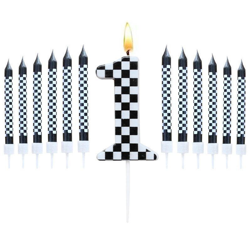 6/12pcs Black and White Birthday Checkered Candles and Cake Topper Racing Cars Candles Sparkler Candles for Racing Car Party
