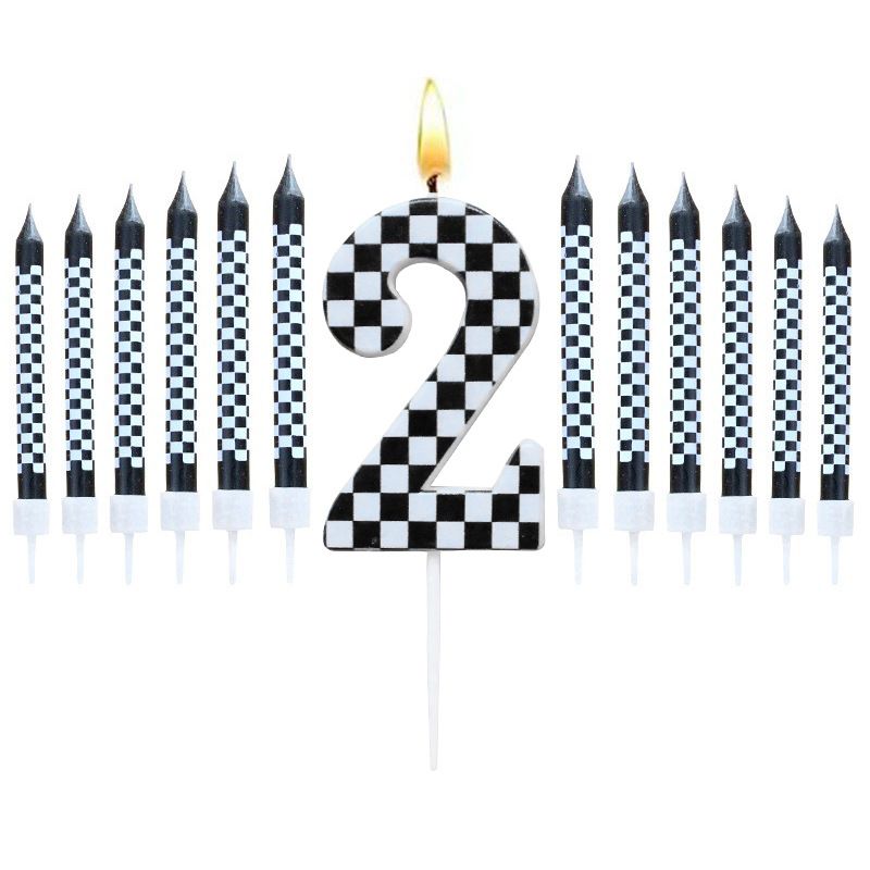 6/12pcs Black and White Birthday Checkered Candles and Cake Topper Racing Cars Candles Sparkler Candles for Racing Car Party