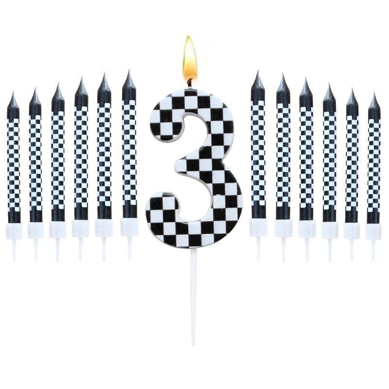 6/12pcs Black and White Birthday Checkered Candles and Cake Topper Racing Cars Candles Sparkler Candles for Racing Car Party