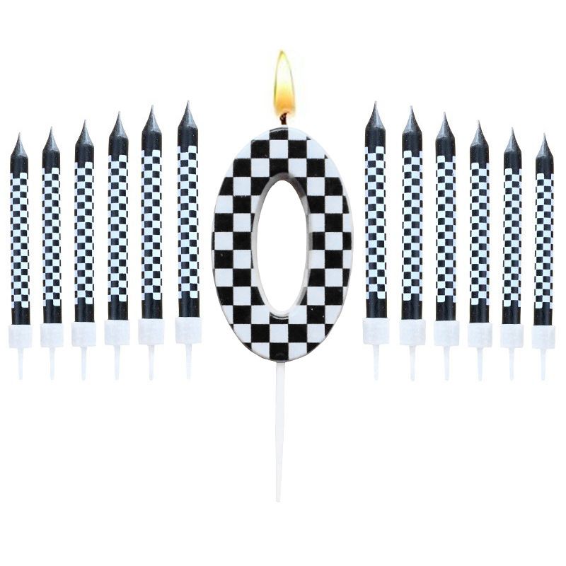 6/12pcs Black and White Birthday Checkered Candles and Cake Topper Racing Cars Candles Sparkler Candles for Racing Car Party