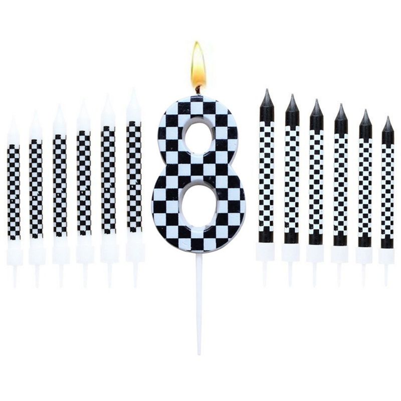 6/12pcs Black and White Birthday Checkered Candles and Cake Topper Racing Cars Candles Sparkler Candles for Racing Car Party