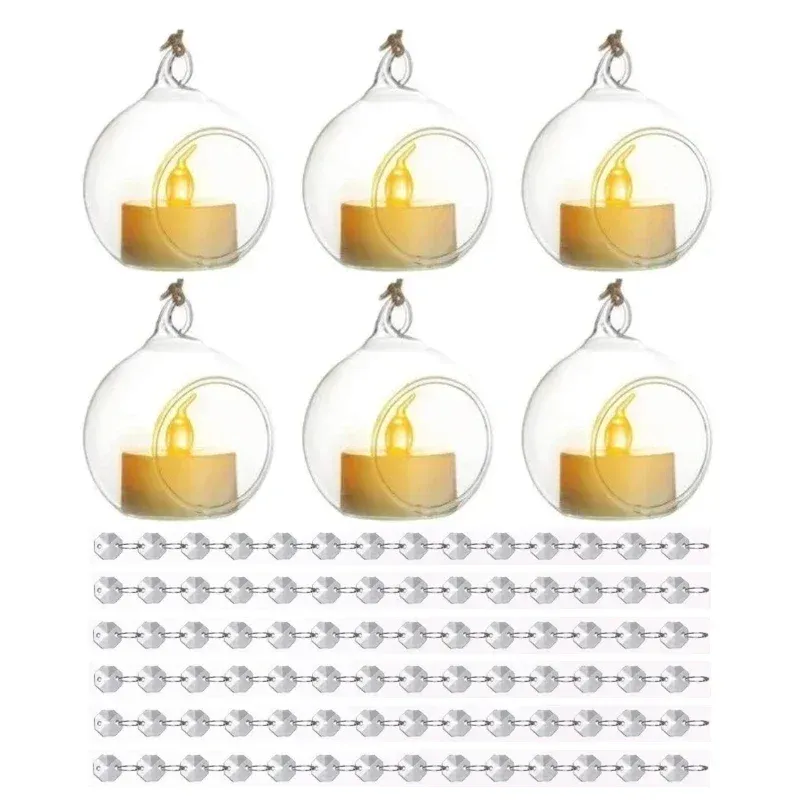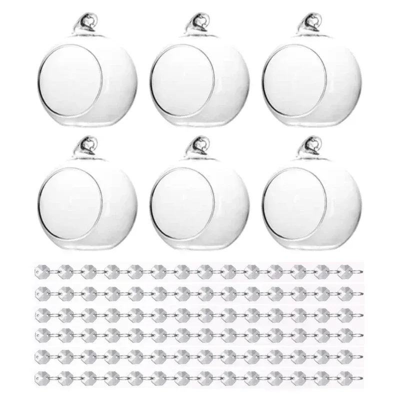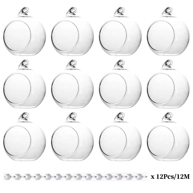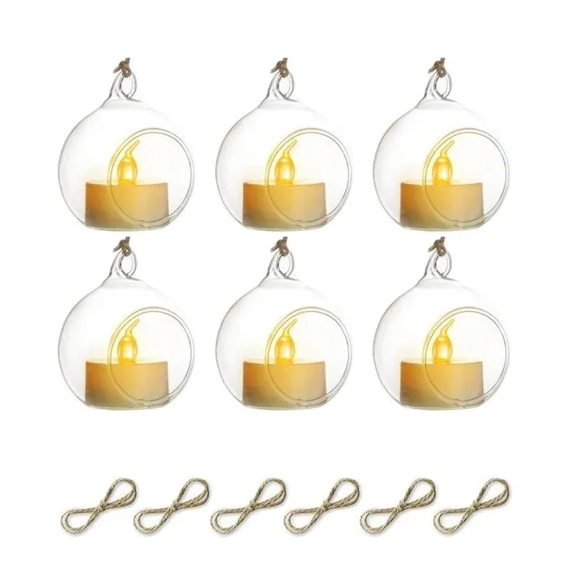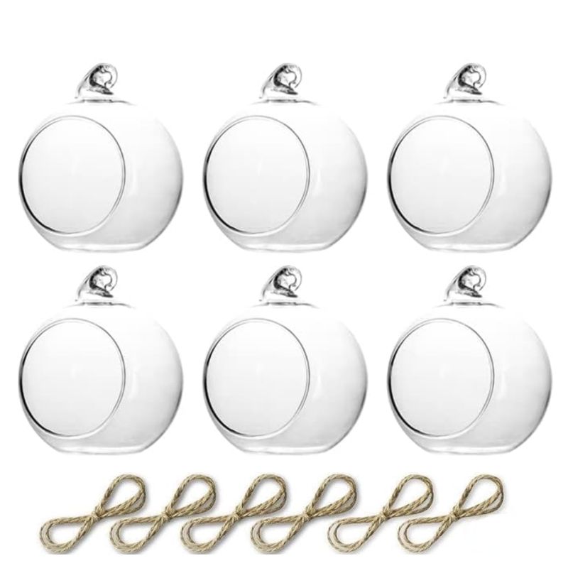 6/12Pcs Hanging Glass Tea Lamp Holder Globe Plant Terrace Balls Air Plant Tea Lamp Candle Holder for Wedding Party Decoration