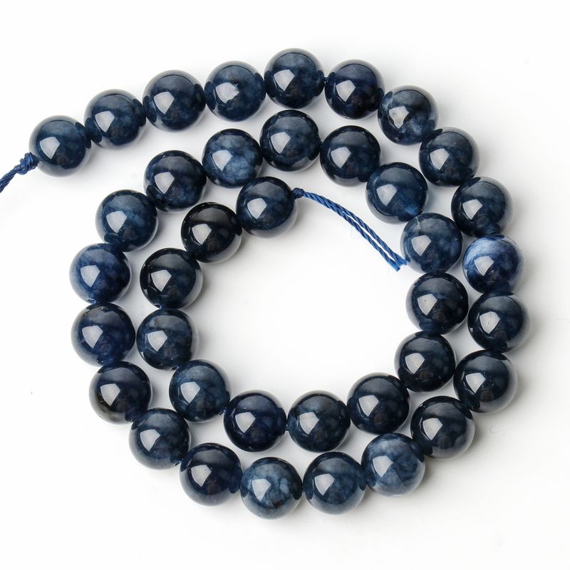 Items Name:6/8/10mm Natural Stone Sapphire Color Jade Beads Blue Round Loose Beads For Jewelry Making Supplies Diy Charms Bracelets 15''