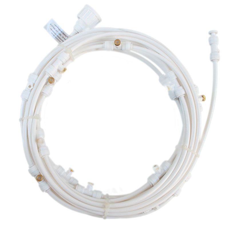 1.  It is recommended to installed the misting system at a height of 2.5m-3m.2.  Connect the adapter to the water tap.3. Turn on the water tap to wash the system for 1 minute to purge the system and remove any impurities.4. Screw the misting nozzles to the Tee fittings, except the last one on the end plug.5. Turn on the water tap to wash the system for 2 minutes to insure that the system is fully purged.6. Turn the water off and install the last nozzle into the fitting with the end plug.7. Fix the misting line by the cable ties saddle clamps provided.8.  Turn on the tap slightly until jets are working, enjoy the cooling misting system .9. Turn off the nozzles, keep them dry and clean when you don't use the misting system for a long time