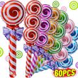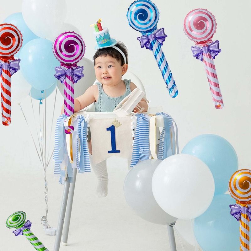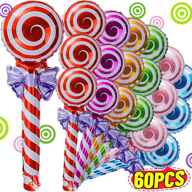 60/6pcs Lollipop Aluminum Foil Balloons with Bow Colorful Handheld Candy Balloon for Wedding Birthday Party Home Decor Kids Toys