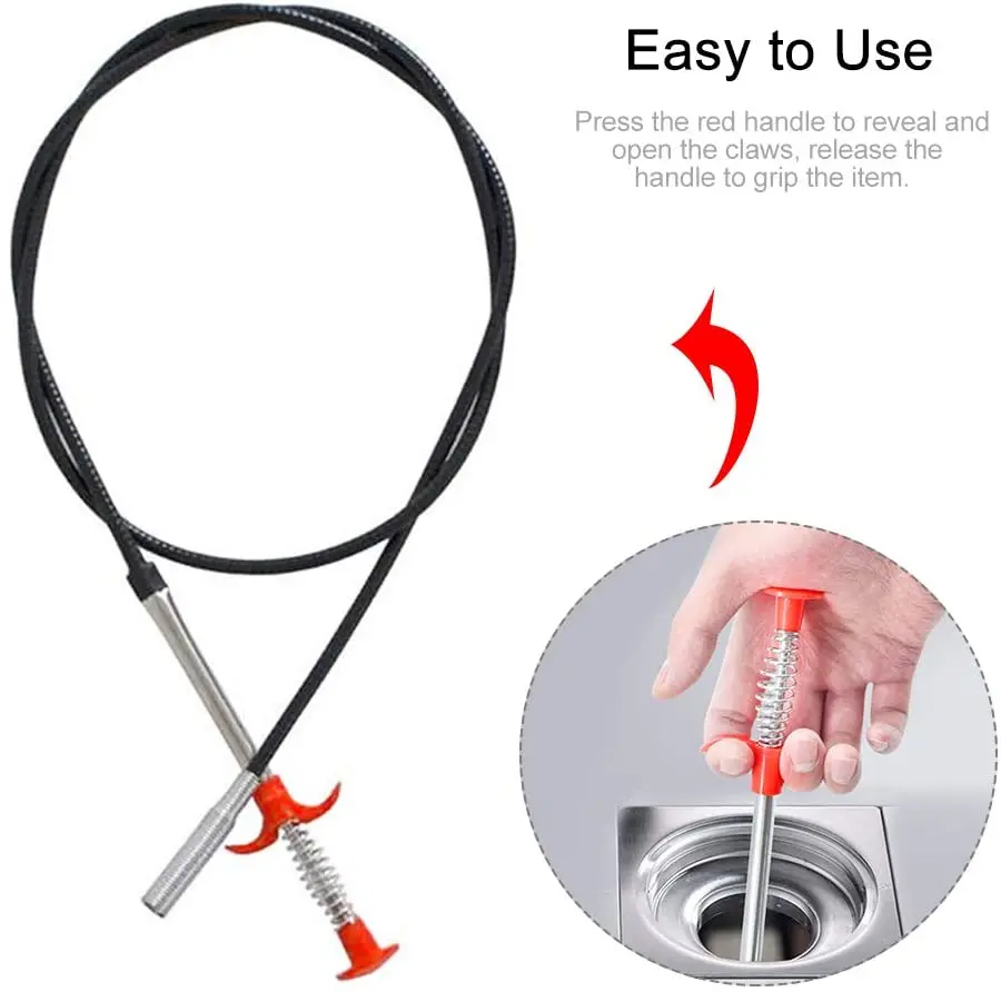 60/90cm Flexible Grabber Claw Pick Up Reacher Bendable Hose Hair Drain Clog Remover Tool for Litter Sink Drain Toilet