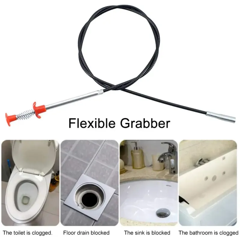 60/90cm Flexible Grabber Claw Pick Up Reacher Bendable Hose Hair Drain Clog Remover Tool for Litter Sink Drain Toilet