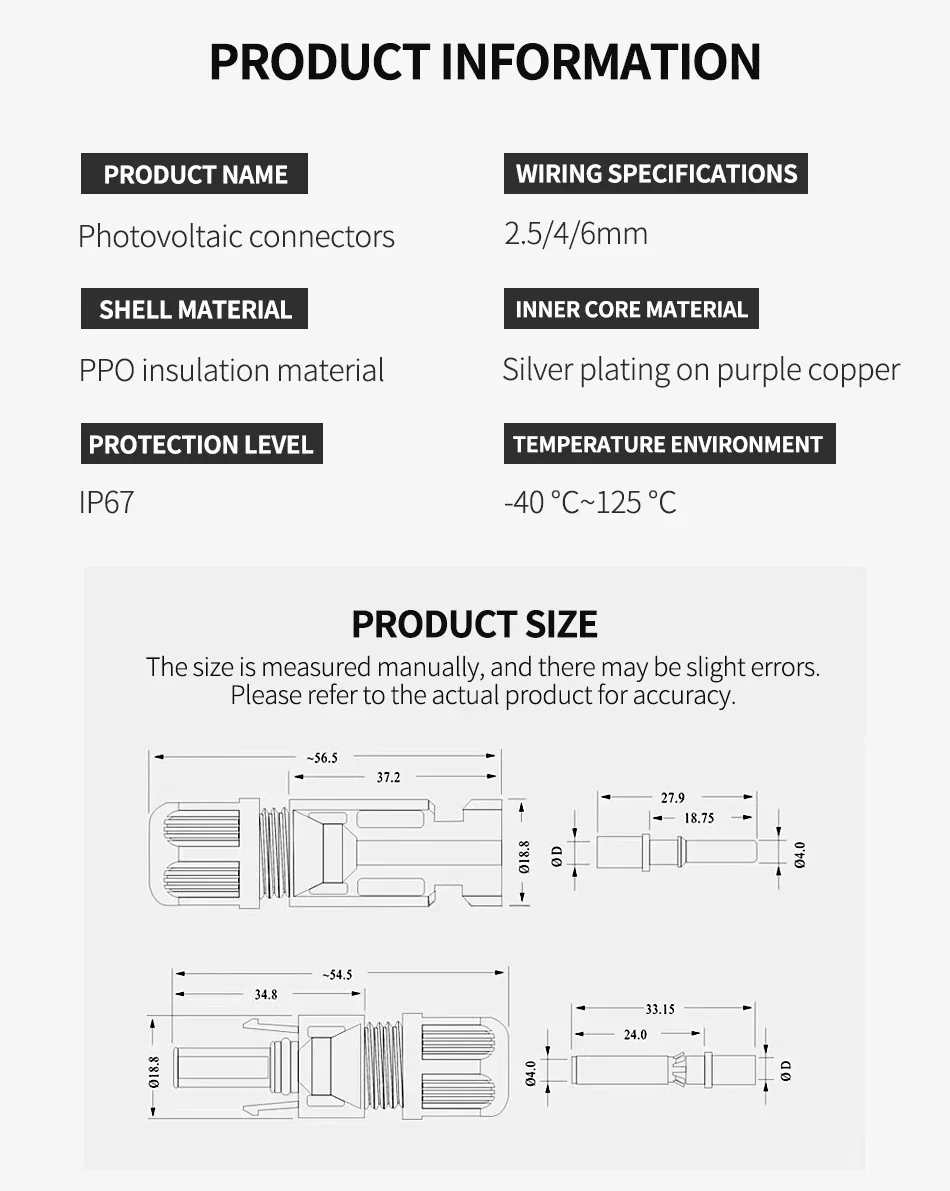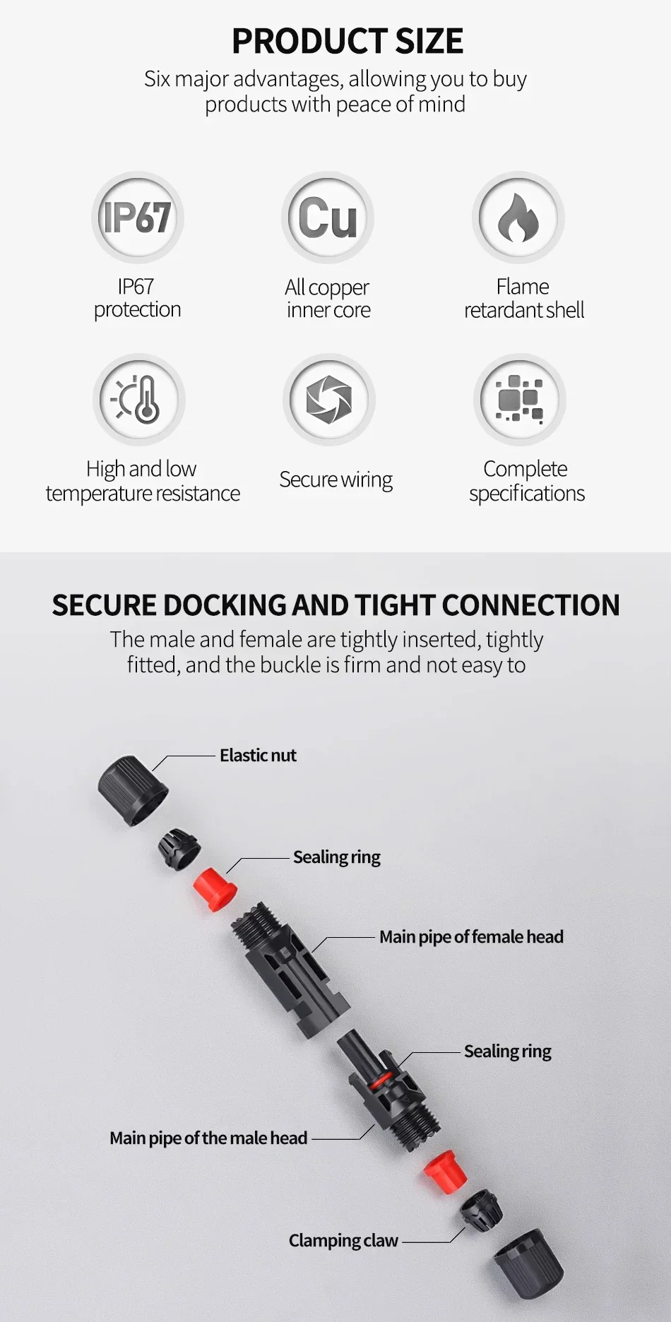 600/400/200/100/10Pcs Solar Panels Connectors Kit, PV Plug 1000V DC 30A, for Photovoltaic MC Cable 2.5/4/6mm²