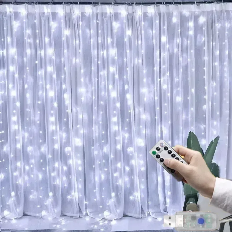 600/400/300/200LED Curtain Garland Window USB Power Fairy Lights Festoon with Remote New Year Garland Led Lights Christmas Decor