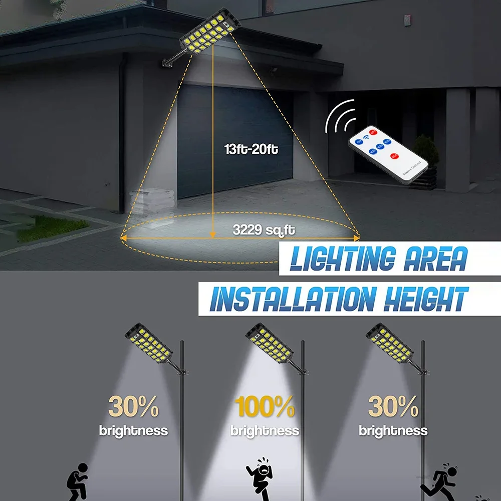 Ultra-bright lighting: the induction solar street lamp adopts the newly upgraded 1089 COB lamp bead and the newly upgraded and enlarged ultra-bright LED. One wick is brighter than six ordinary wicks. The appearance of 23 lamp beads is brighter and more focused, which can be installed in your garden, backyard, villa and farm.