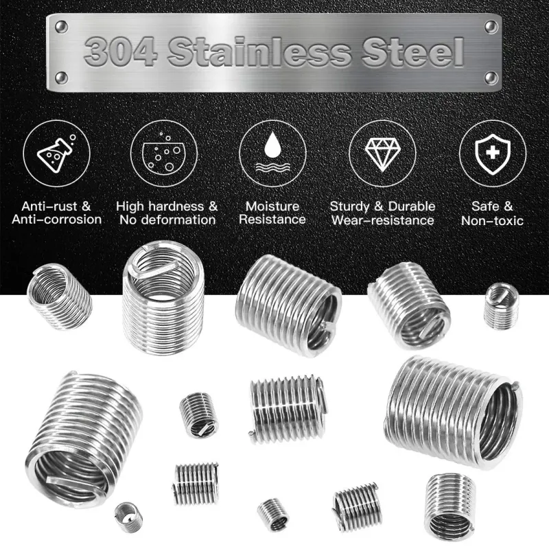 60Pcs Wire Thread Insert M3 M4 M5 M6 M8 M10 M12 Fastening Thread Insert Stainless Steel Spiral Wire Screw Sleeve Wear Repair Kit