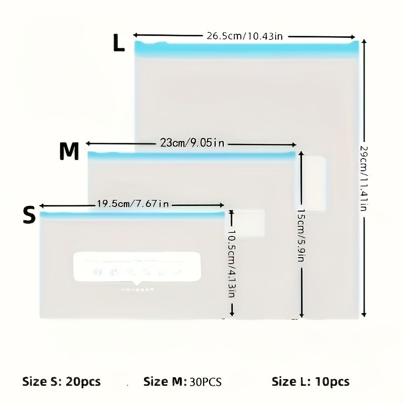 60pcs Zippered Food Storage Bags Three Sizes for Fruits Grains Vegetables Meat Fresh Keeping Sealing Kitchen Storage Accessories