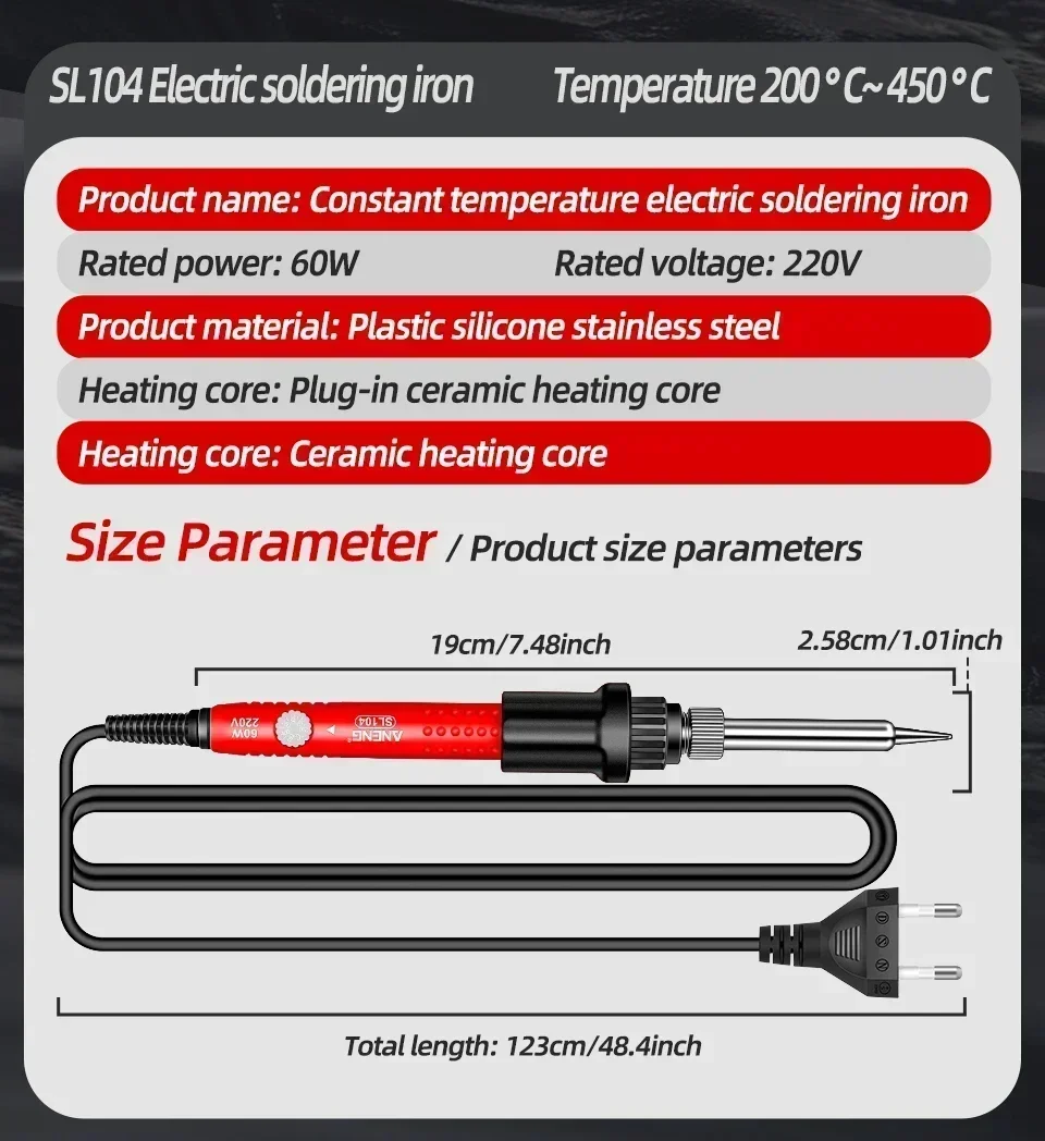 ANENG SL104 Electric Soldering Iron 60W Adjustable Temperature Portable Kit 220V Heater Soldering Iron Tips Welding Tools
