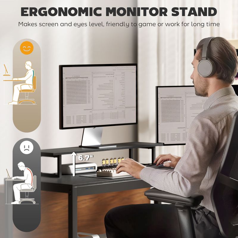 Discover your optimal gaming and work setup with the [BRAND NAME] L-shaped gaming desk! Enjoy customizable LED lighting to create your preferred atmosphere, with built-in AC outlets and USB ports to power your devices. This versatile design effortlessly converts from a space-saving corner desk to a spacious long desk workstation, allowing for a highly flexible dual-monitor setup in either configuration for enhanced play or productivity.