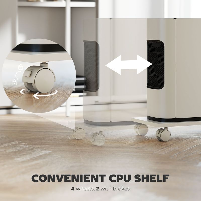 • - Rolling computer shelf with 4 wheels, 2 with locking brakes for stability