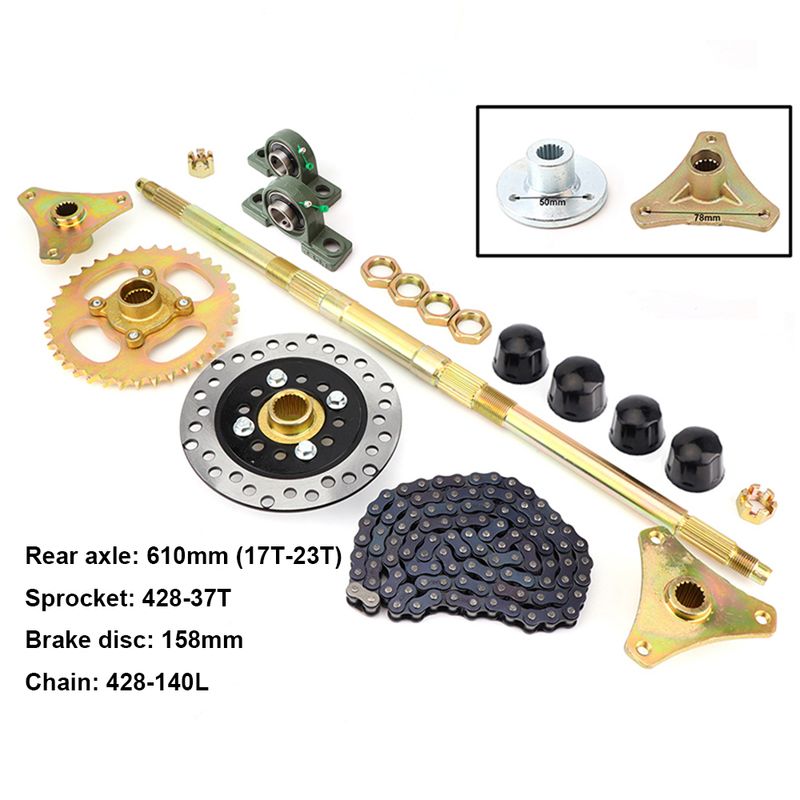 610mm Rear Axle Kit 428-37T Sprocket 158mm Brake Disc 140L Chain For DIY 49 50 70 90 110cc Electric Kids ATV Go kart Quad Buggy