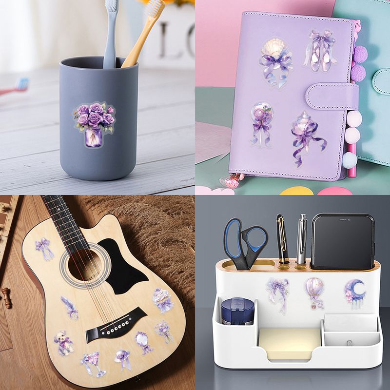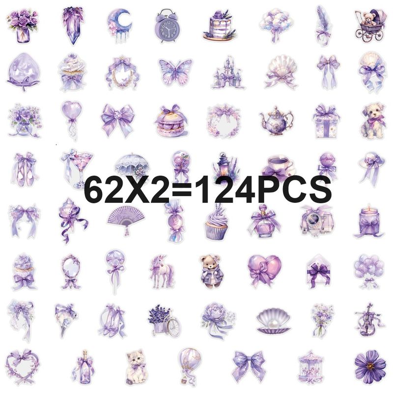 62/124 PCS Transparent PET Purple Graffiti Stationery Notebook Decorative Stickers Luggage Water Cups Scooter Stickers