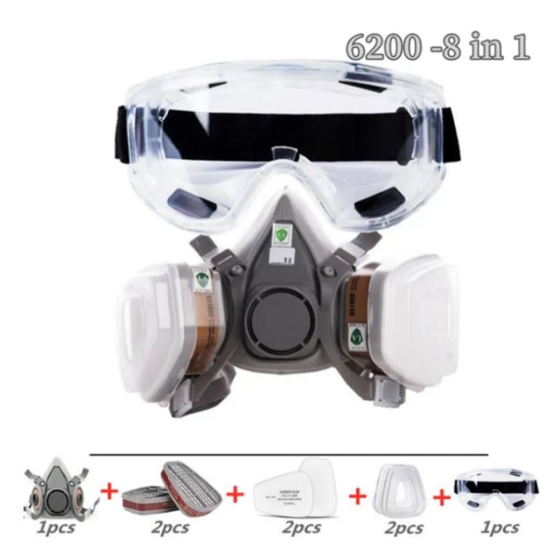 6200 Dust Gas Mask Filters Suit Industrial Half Face Painting Spraying Respirator with Protective Fog-proof Glasses Safety Work