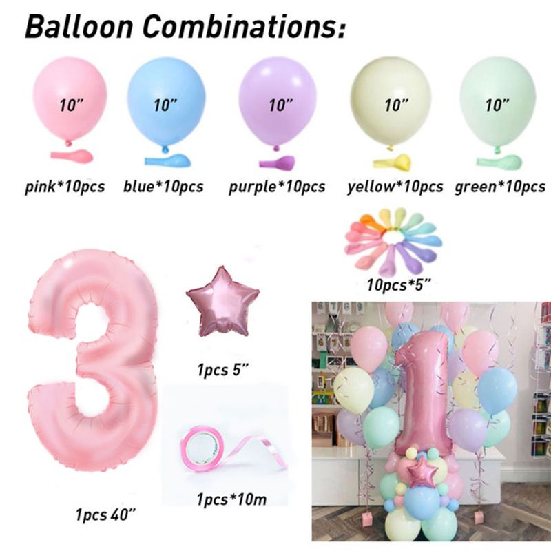 63pcs Pastel candy Pink 1st 2nd 3rd Foil Number Balloon set Macaron Latex Ballons Girl Princess baby shower Birthday Party decor