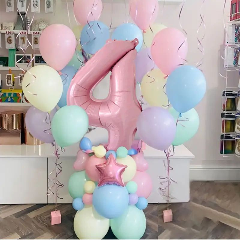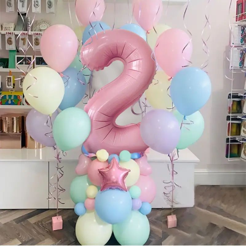 63pcs Pastel candy Pink 1st 2nd 3rd Foil Number Balloon set Macaron Latex Ballons Girl Princess baby shower Birthday Party decor