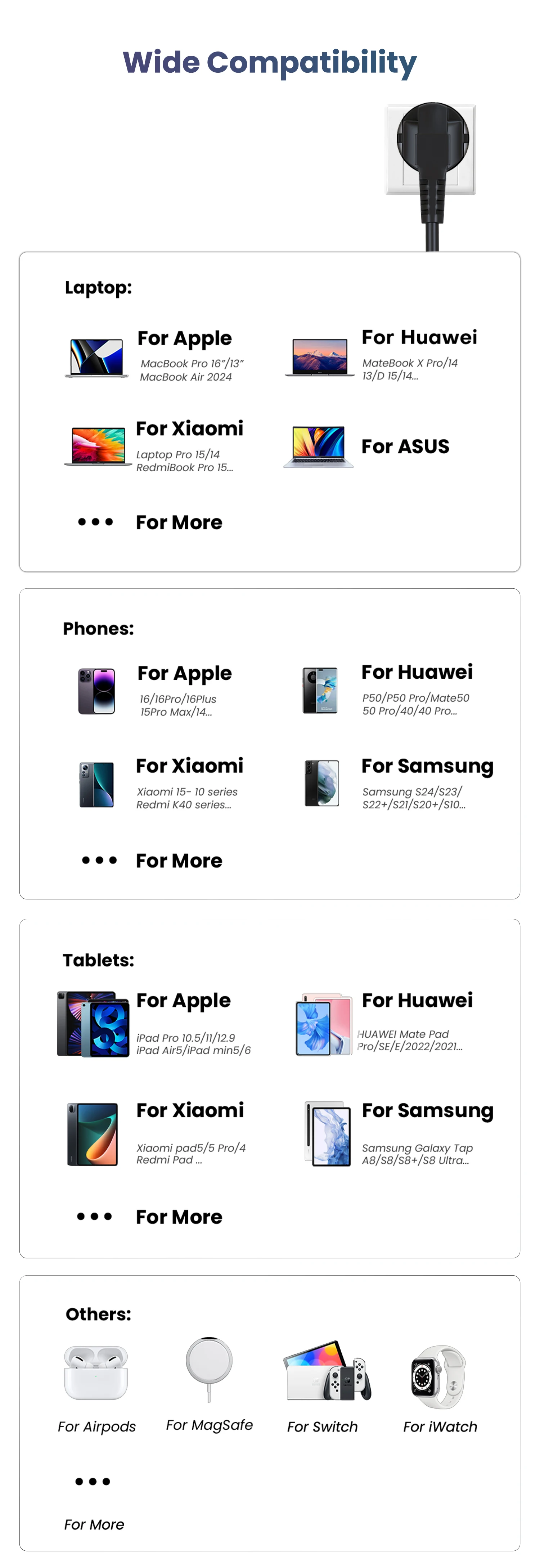 USB-A1/A2/A3/A4 : QC3.0 5V/3A、9V/3A、12V/3A、20V3A 60W (Max)