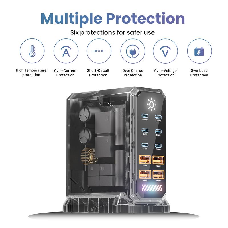 660W GaN USB C Charger Station 10 Port ( 6 Type C + 4 USB A ) Fast Charger Type C 140W PD3.1 PD3.0 PPS Quick Charger For Macbook Pro iPad iPhone 16 Samsun S25 S24 S23