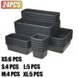 -- Our tool box organizer bins include 24 trays:5 x XL size (12.5x6.2x1.77in), 5 x L size (9.25x6.2x1.77in), 4 x M size(9.25x3x1.77in), 4 x S size(6.2x3x1.77in), 6 x XS size(3x3x1.77in).