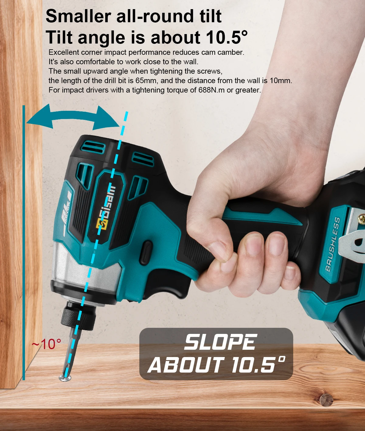 - Powerful Brushless Motor & High Torque: Maximum torque of 688N.M., along with variable speed up to 7200RPM, this impact driver can drive screws or tighten nuts at astonishing speed.