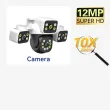 6K 12MP Outdoor WiFi Security Camera, Triple Lens Triple Screen 10X Zoom PTZ Auto Tracking Sound Light Alarm