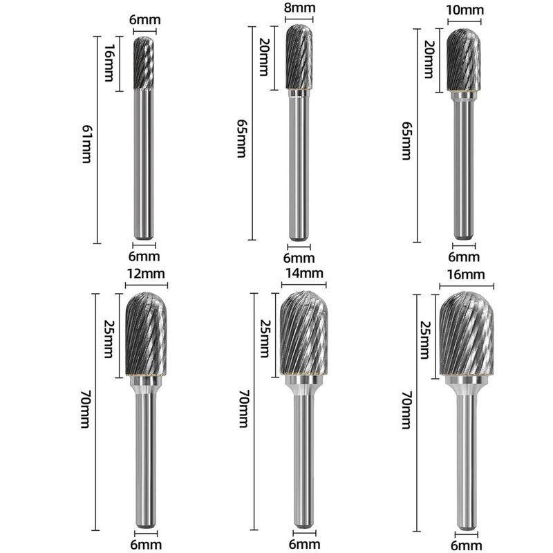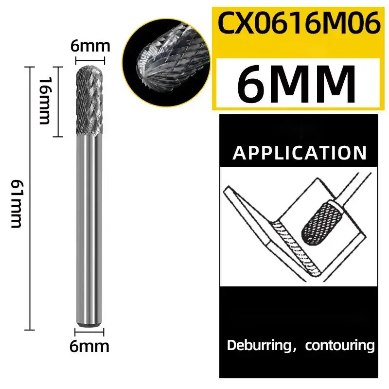 6mm C/CX Type Head Tungsten Carbide Rotary File Tool Point Burr Grinder Abrasive Tools Drill Milling Carving Bit Tool for Metal