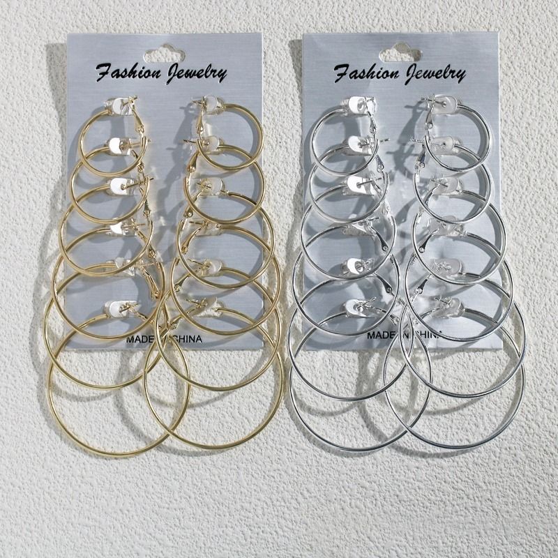 6Pairs Hoop Earrings Set Big Circle Earrings Jewelry for Women Girls Ear Clip Punk Style Earrings Fashion Jewelry Accessories