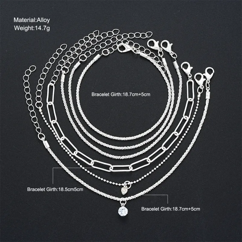 6Pcs 925 Sterling Silver Rhinestone Bracelets for Women Girls Luxury Korean Sparkling Starry Sky Charm Bracelets Party Jewelry